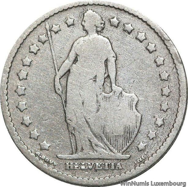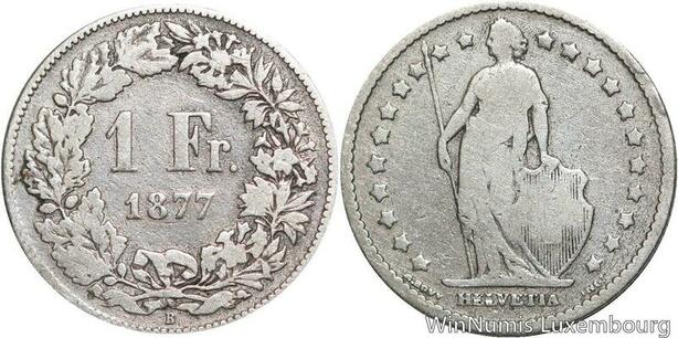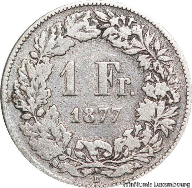 R5130 Switzerland 1 Franc Helvetia 1877 B Berne Silver -> Make offer