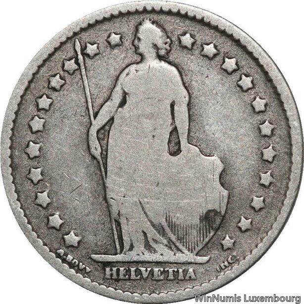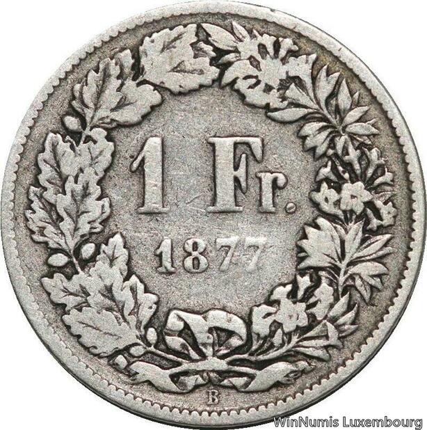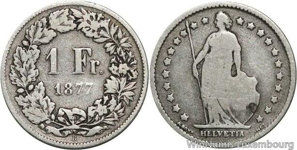 R5135 Switzerland 1 Franc Helvetia 1877 B Berne Silver -> Make offer