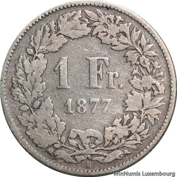 R5137 Switzerland 1 Franc Helvetia 1877 B Berne Silver -> Make offer