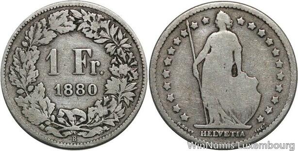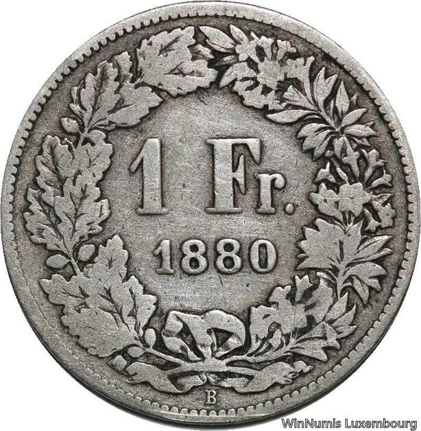 R5138 Switzerland 1 Franc Helvetia 1880 B Berne Silver -> Make offer