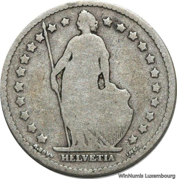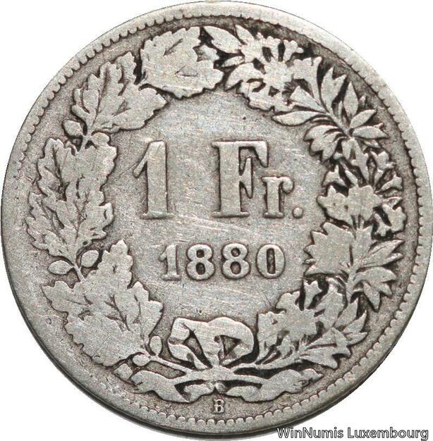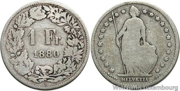 R5141 Switzerland 1 Franc Helvetia 1880 B Berne Silver -> Make offer
