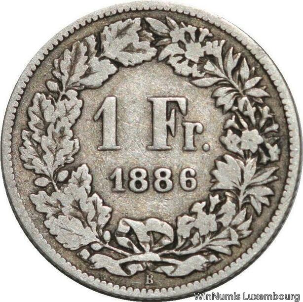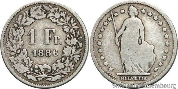 R5143 Switzerland 1 Franc Helvetia 1886 B Berne Silver -> Make offer
