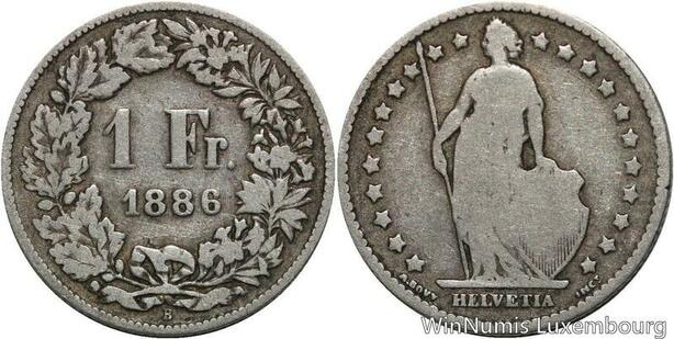 R5147 Switzerland 1 Franc Helvetia 1886 B Berne Silver -> Make offer