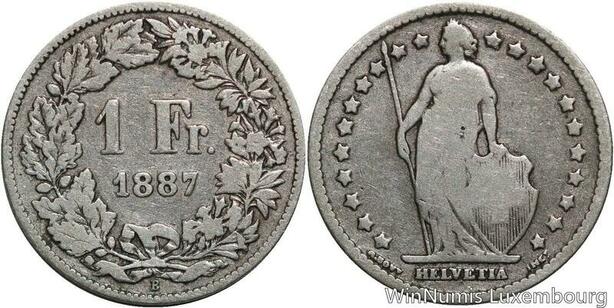 R5151 Switzerland 1 Franc Helvetia 1887 B Berne Silver -> Make offer