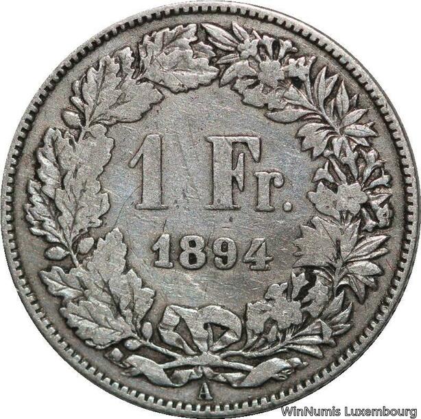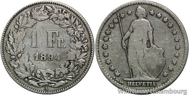 R5156 Switzerland 1 Franc Helvetia 1894 A Paris Silver -> Make offer