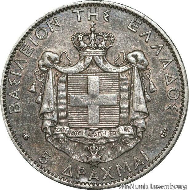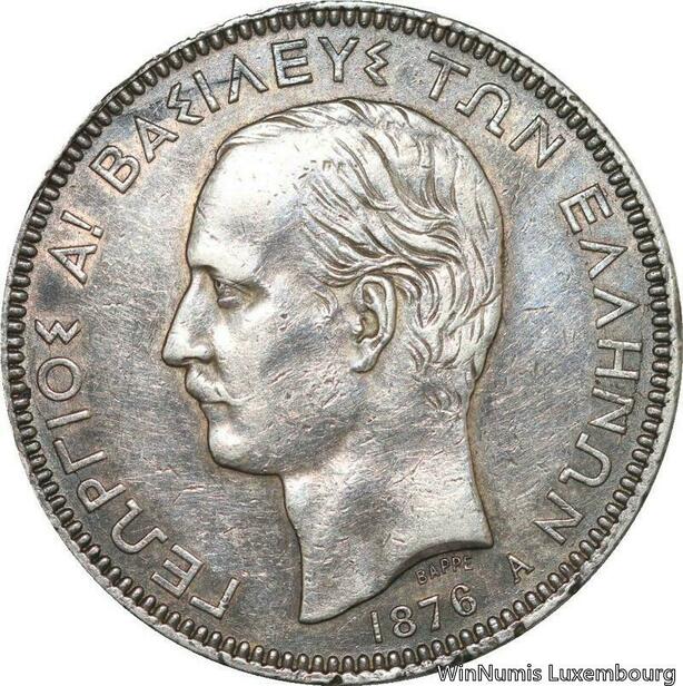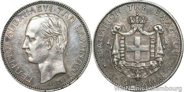 R5167 Rare Greece 5 Drachmai George I 1876 A Paris Silver -> Make offer