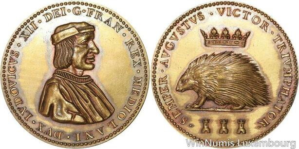 R5168 Rare Médaille Louis XII Porc-épic Duc de Milan 1498 1514 SUP -> Make offer