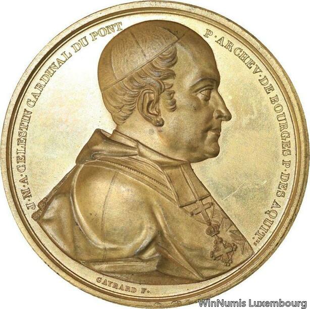 R5193 Rare Médaille Saint Celestin Cardinal 1843 Bourges Gayrard SUP -> Offer