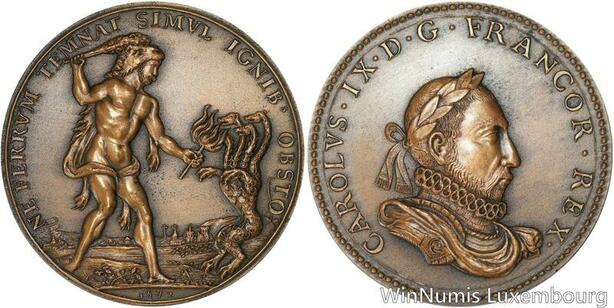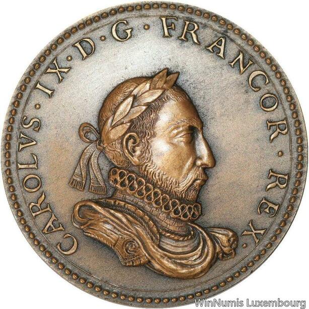 R5195 Rare Médaille Charles IX Nuit St. Bartholomé Massacre Protestants 1572 SUP