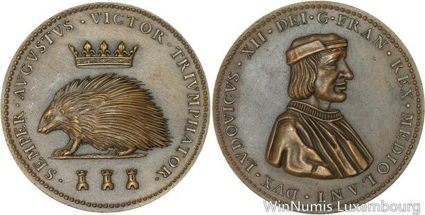 R5212 Rare Médaille Louis XII Porc-épic Duc de Milan 1498 1514 SUP -> Make offer