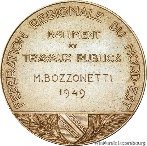 R5220 Médaille Fédération Nationale Nord Est Travaux Publics Bozzonetti 1949 SUP