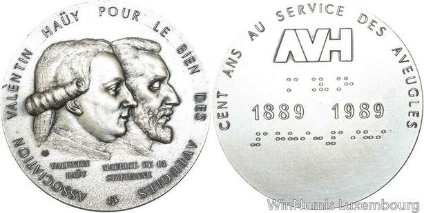R5246 Médaille Valentin Haüy Maurice Sizeranne Services Aveugles 1889 1989