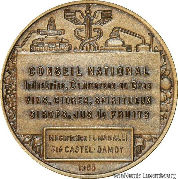 R5253 Médaille Conseil National Commerce Vins Cidres Ste Castel Damoy 1985 SUP