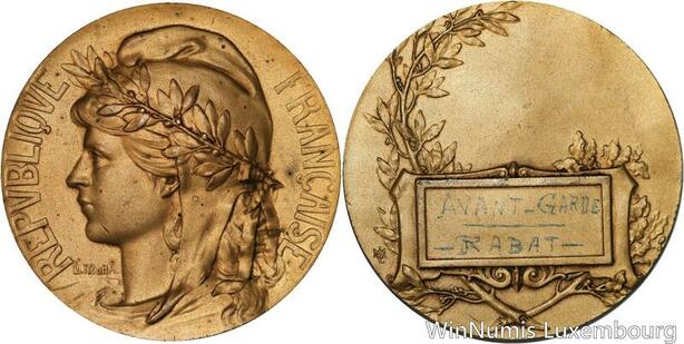 R5268 Rare Medal Maroc Morocco Colonies Avant-Garde Marianne Rabat Mattei SUP