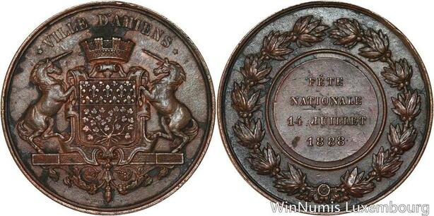 R5279 Médaille Ville Amiens Fête Nationale 14 Juillet 1888 Chevaux Ailés
