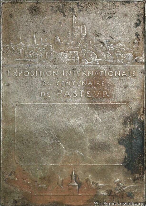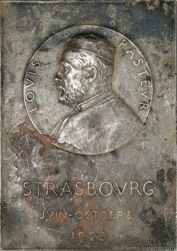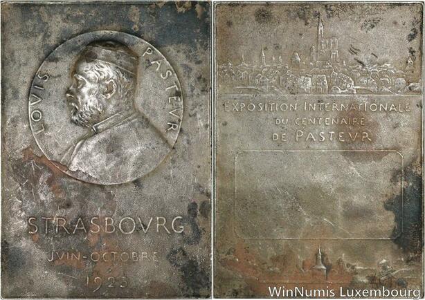 R5295 Plaque Exposition Internationale Louis Pasteur Strasbourg 1925 Silvered