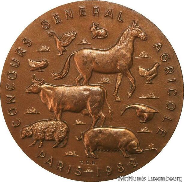 R5337 Médaille Salon International Agricole Paris 1982 Baron Horse Coq Pig