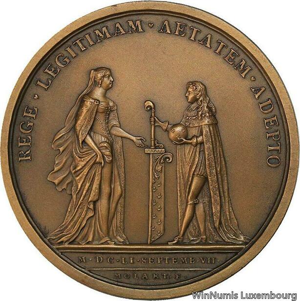 R5341 Rare Médaille Louis XIV La mojorité Roi 1651 Molart SUP -> Make offer