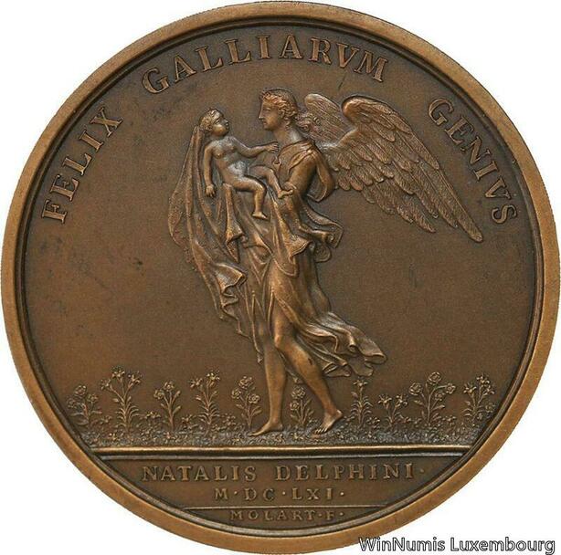 R5342 Rare Médaille Louis XIV Naissance Dauphin Louis de France 1661 SUP