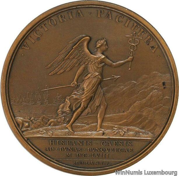 R5344 Rare Médaille Louis XIV Victoire Turenne Bataille Dunes 1658 Dunkerque SUP