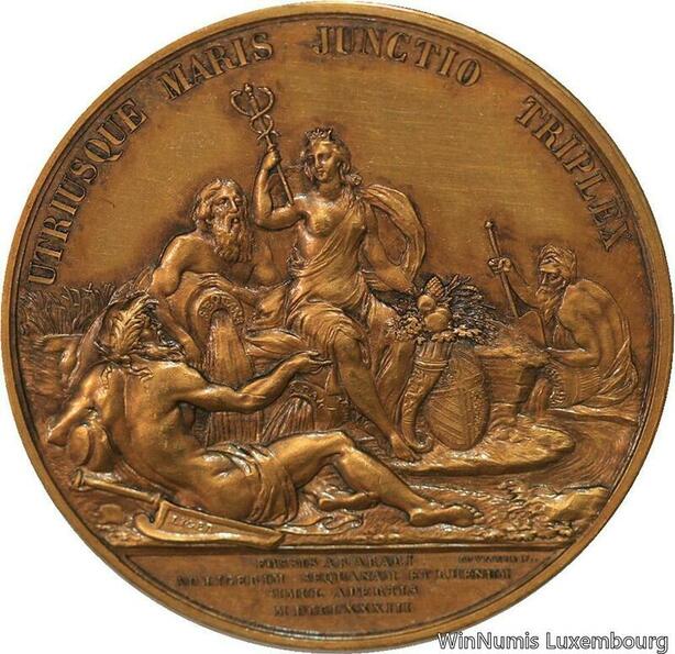 R5345 Rare Médaille Louis XVI Le canal du Centre Loire-Seine 1783 Paris SUP