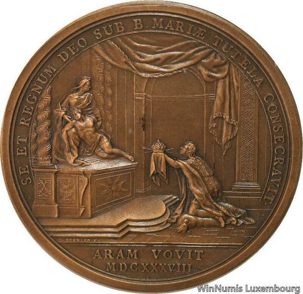 R5349 Rare Médaille Louis XIII Royaume protégé Vierge Bernard 1638 SUP -> Offer