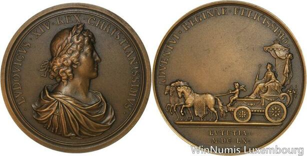 R5351 Rare Médaille Louis XIV Marie-Thérèse Autriche Fille Philippe IV 1660 SUP
