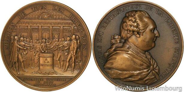R5352 Rare Médaille Louis XVI Abandon Privilèges Duvivier 1789 Paris SUP