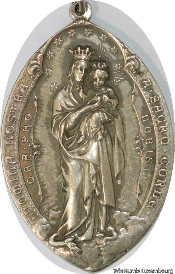 R5360 Rare Vatican Plaque 77mm Madonna Christ Sacred Heart Silvered AU