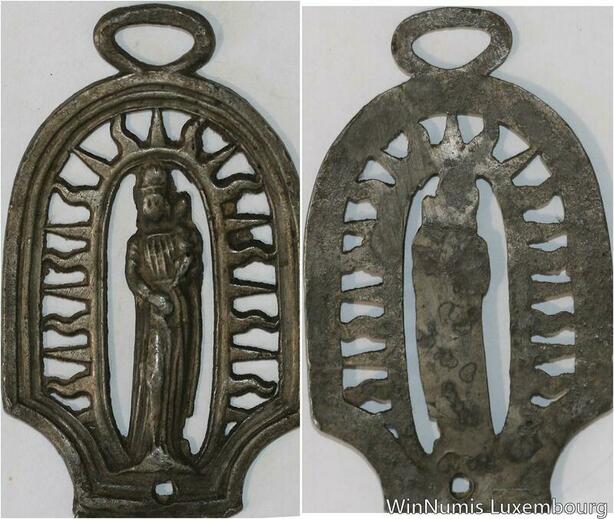 R5361 Rare Plaque Chrétienne Vierge Marie Entrée au Paradis Porte Enfer SUP