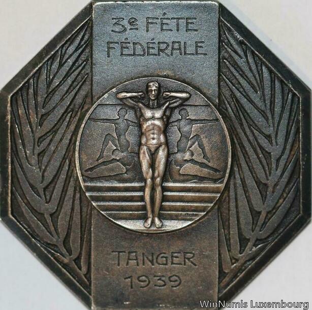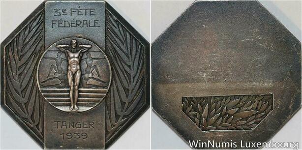 R5367 Rare Medal Maroc Colonies Art Déco 3ème Fête Fédérale Tanger 1939 Silvered