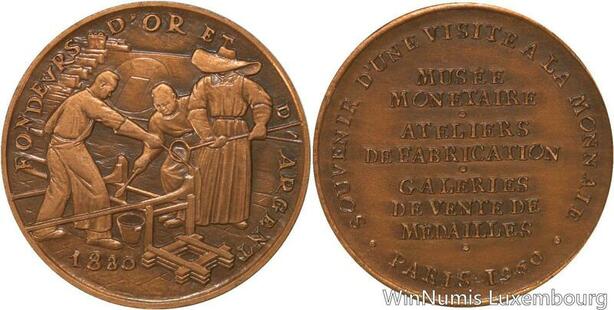 R5380 Médaille Fondeurs d'or et d'argent 1830 Souvenir Monnaie de Paris 1960 SUP