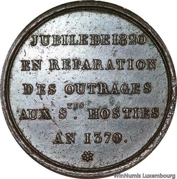 R5450 Rare Medal Belgique St Sacrement Miracle Jubilée 1820 Ste Hosties 1370 SUP