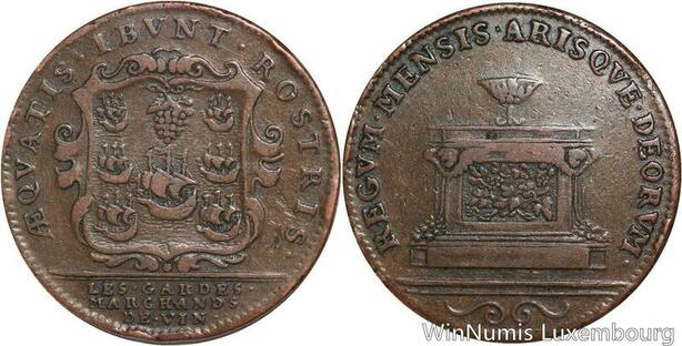 R5500 Jeton France Louis XV Les Gardes Marchands de Vin 1715 1774 -> Make offer