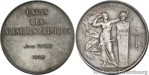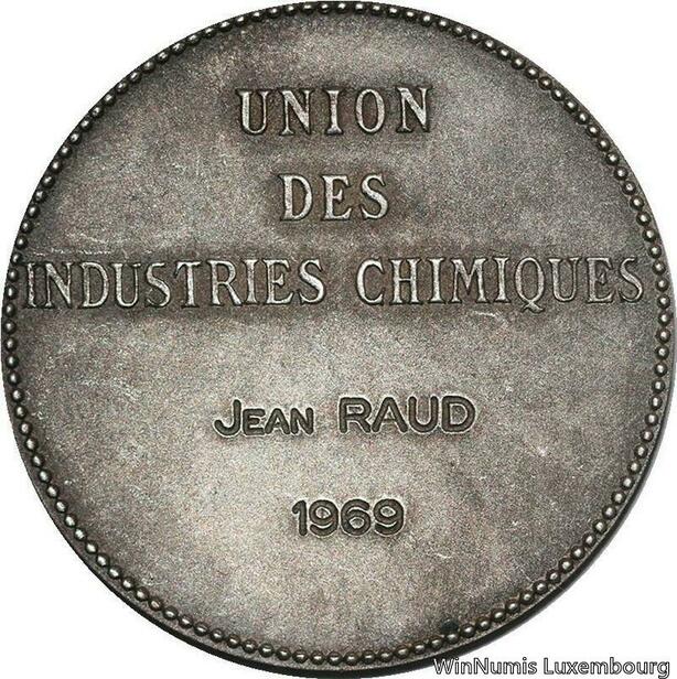 R5533 Médaille Union Industrie Chimiques Jean Raud 1969 Lavoisier Silvered SUP