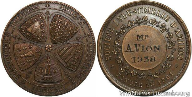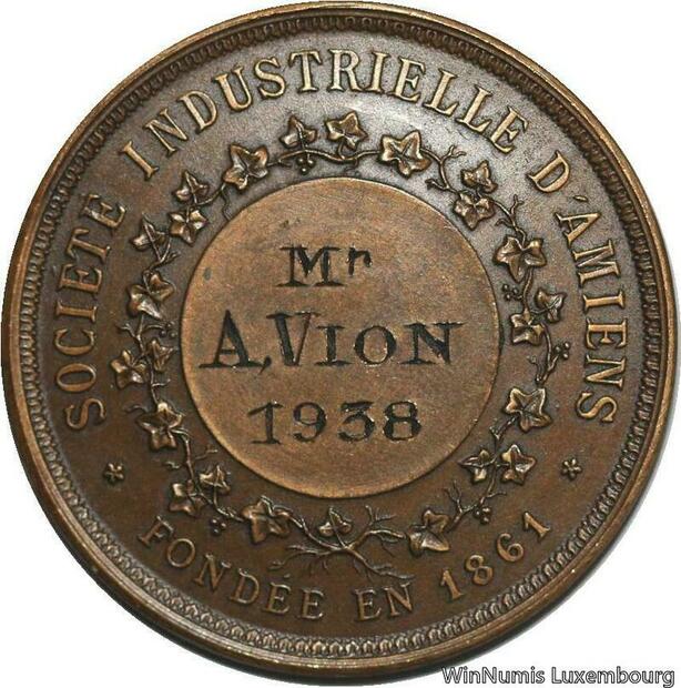 R5551 Médaille Société Industrielle Amiens Abbeville Mondidier Doullens 1938 SUP