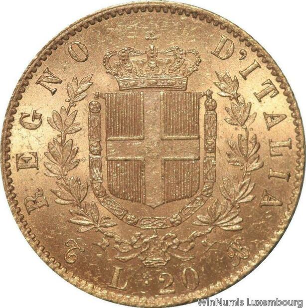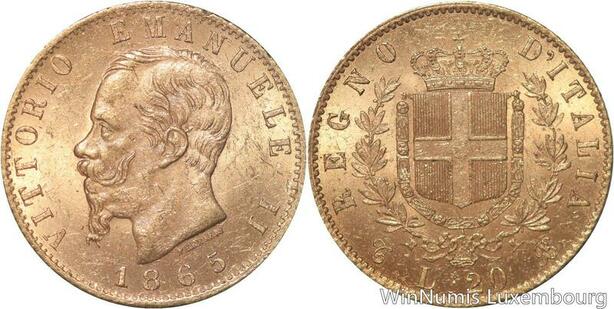 R5907 Rare Italy 20 Lire Victor Emmanuel II Or Gold 1865 T Turino AU -> M offer