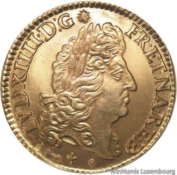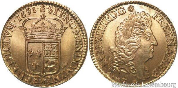 R5908 Rare Refrappe Louis d'or Louis XIV Bearn Or Gold 1691 Pau PCGS MS68