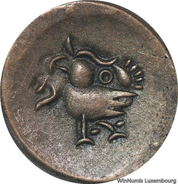R5935 Rare Cambodia 2 Pe 1/2 Fuang Norodom I ND 1847 Rooster Silver AU >M offer