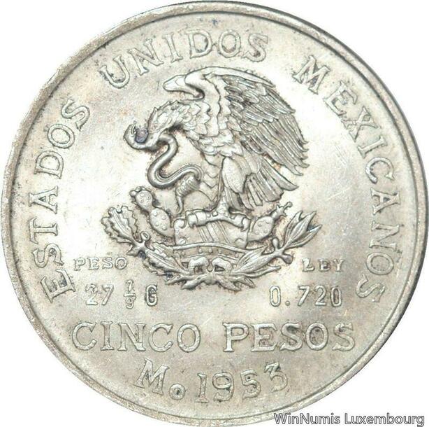 R5949 Mexico Estados Unidos Mexicanos 5 Pesos 1953 Silver UNC >M offer