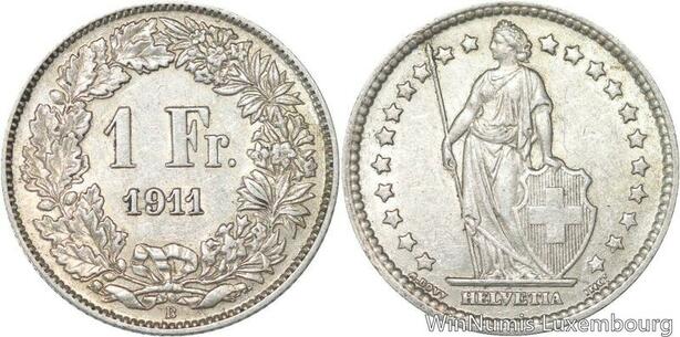 R5953 Switzerland 1 Franc Helvetia 1911 B Berne AU -> Make offer