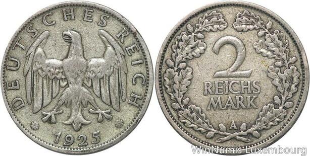 R5960 Germany Weimar Republic 2 Reichsmark 1925 A Berlin Silver -> Make offer