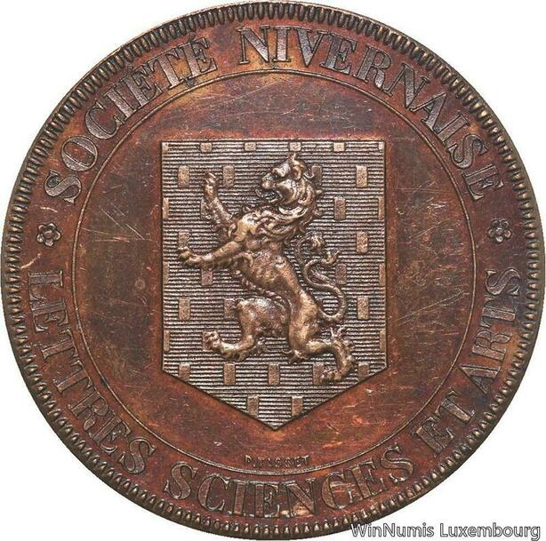 R5969 Rare Médaille Société Nivernaise Sciences Arts Porte Croux Nevers SUP AU