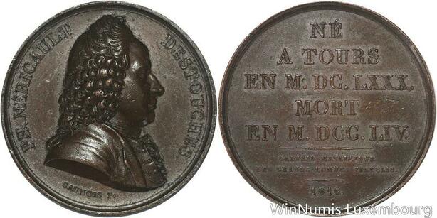 R5979 Médaille Philippe Néricault Destouches French Dramatist 1816 SUP AU