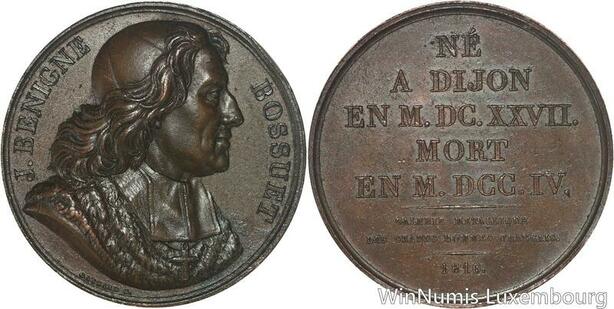 R5986 Médaille Benigne Bossuet Bishop Theologian Dijon 1816 Gayrard SUP AU