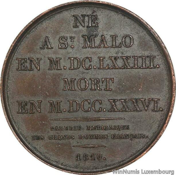 R5990 Médaille René Guay-Trouin Sieur Gue Breton Corsair Saint-Malo 1819 SUP AU