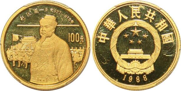 AA032 Rare China 100 Yuan Zhao Kuangyin 1988 Or Gold PCGS PR67 ->Make offer