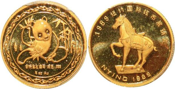 AA035 Rare China 1/4 Oz Panda New York INC 1989 Or Gold PCGS PR67 Cameo Proof