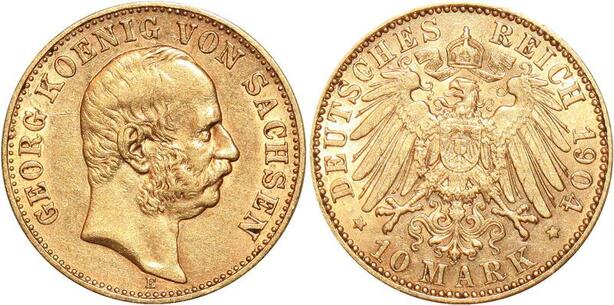 AA186 Germany 10 Marks Georg Sachsen 1904 E Or Gold AU ->Make offer