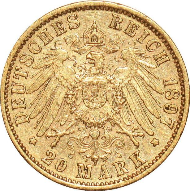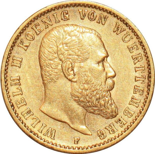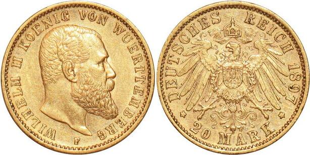 AA198 Germany 20 Marks Wilhelm II Wurttemberg 1897 F Or Gold UNC ->Make offer